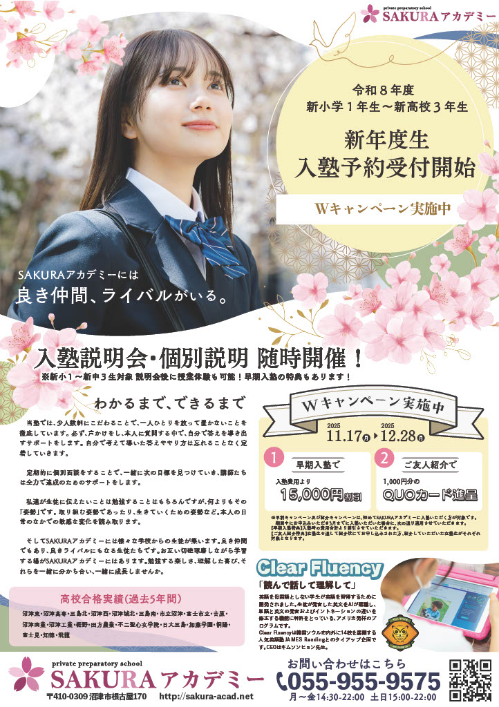 詳しくはSAKURAアカデミーまでお問い合わせください。